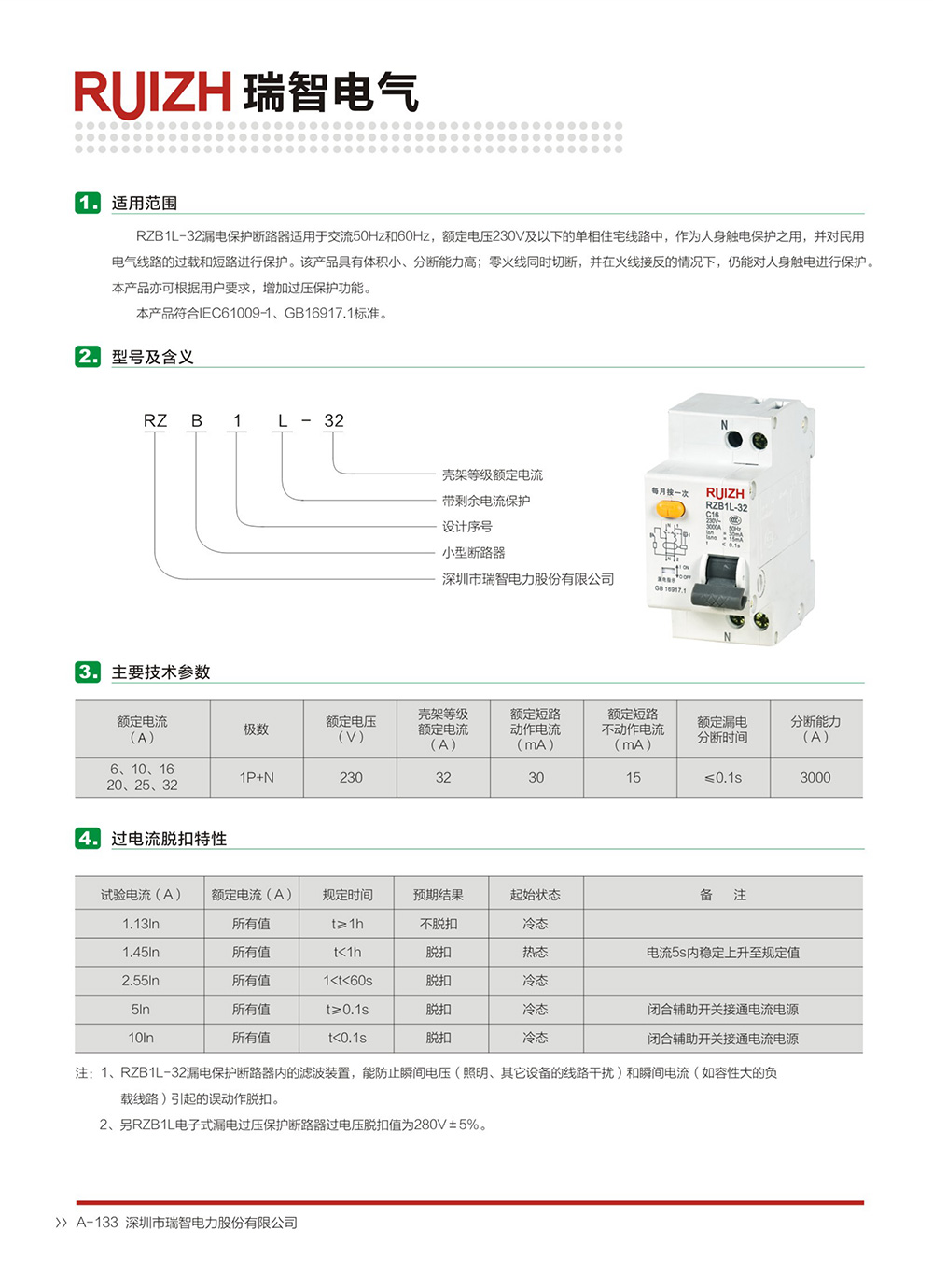 产品简介:RZB1L高分断小型漏电断路器